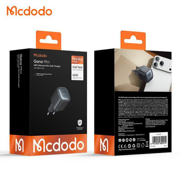 - PPS (Programmable Power Supply) : یکی از ویژگیهای پیشرفته در شارژ سریع است که در شارژر دیواری ۴۵ وات مک دودو وجود دارد. این فناوری امکان تنظیم دقیق ولتاژ و جریان را فراهم میکند تا دستگاه بهصورت هوشمند و ایمن شارژ شود. PPS باعث کاهش تولید گرما، افزایش بازدهی و افزایش عمر باتری میشود. این قابلیت برای گوشیهایی مثل سری Samsung Galaxy که از Super Fast Charging 2.0 پشتیبانی میکنند و آیفون های سری 15 ، 16 و 17 بسیار مفید است.( PPS: 3.3V-11V⎓4.05A )