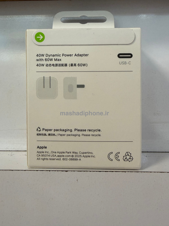 آداپتور داینامیک 40 وات با توان حداکثر 60 وات iphone17